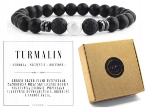 BRANSOLETKA CZARNY TURMALIN HOWLIT LAWA WULKANICZNA HEMATYT-UNISEKS,PREZENT