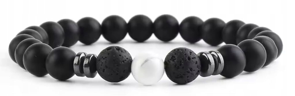 W kompozycję wplecione są także kamienie lawy wulkanicznej, wyróżniające się surową, porowatą fakturą. Wprowadzają one energię natury i dodają bransoletce wyjątkowej głębi.