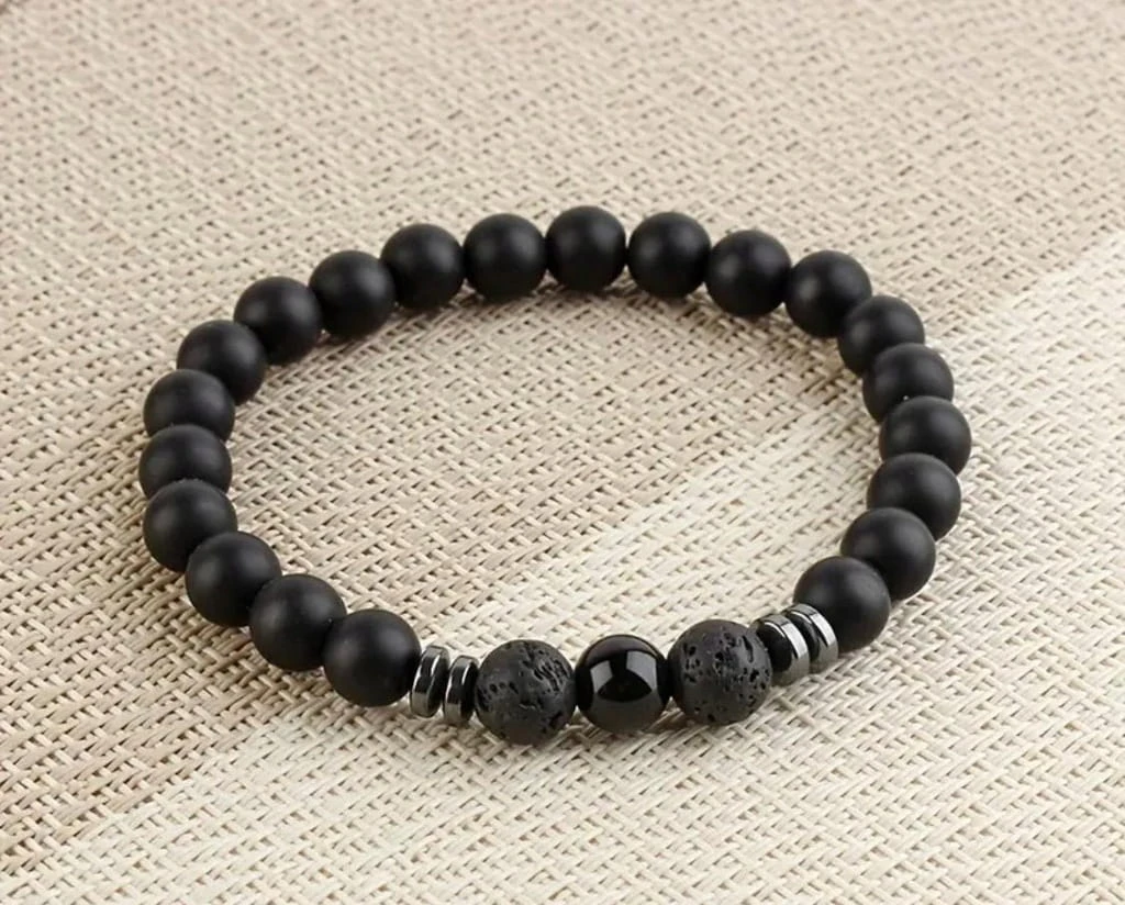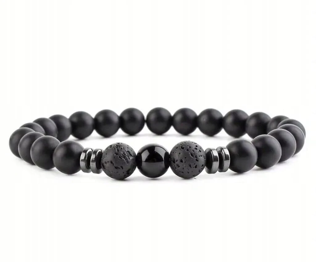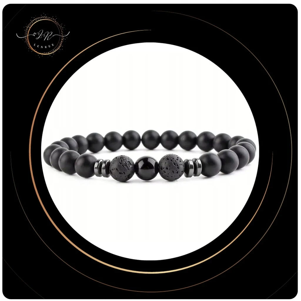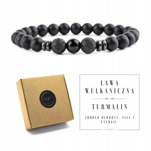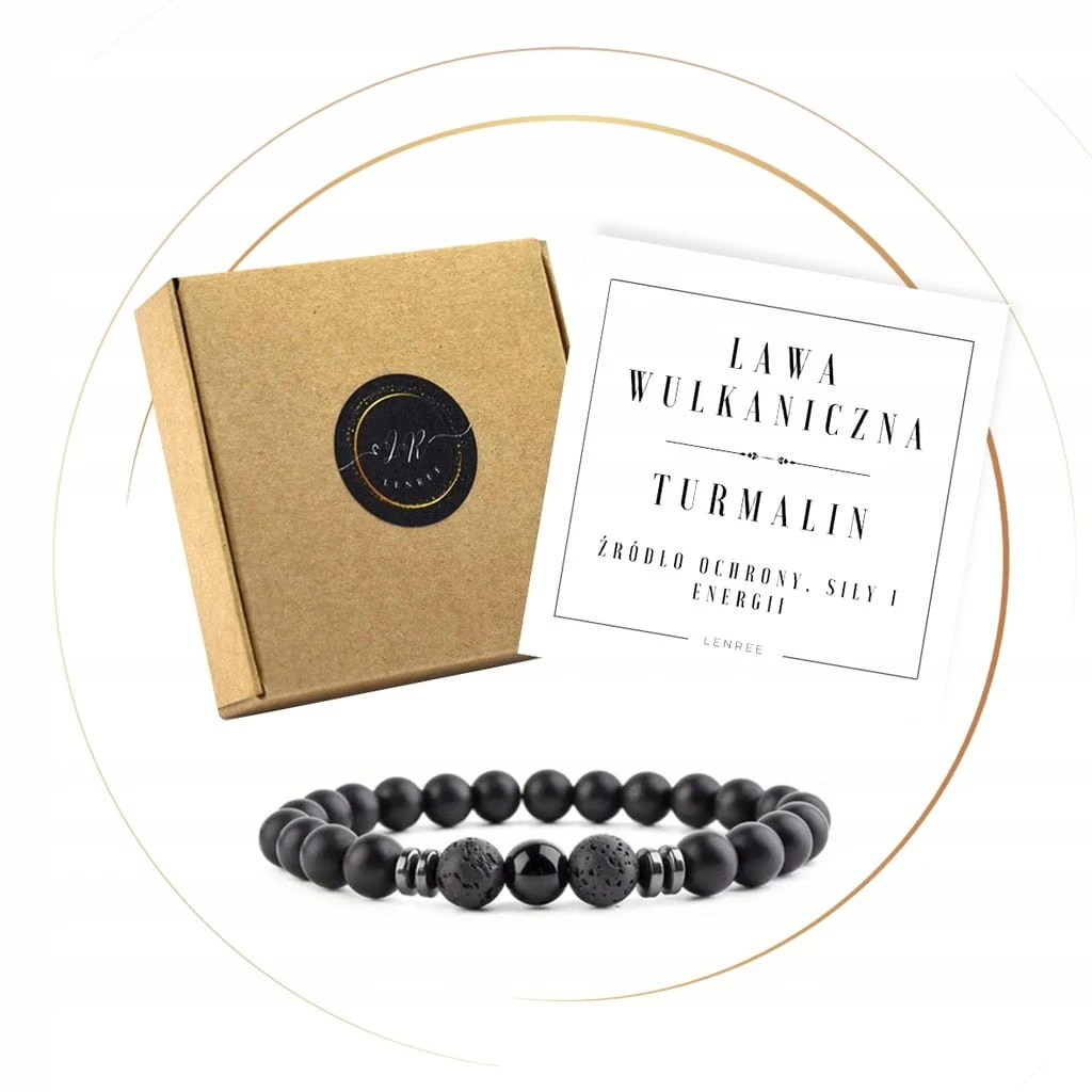 Bransoletka wykonana z turmalinu i lawy wulkanicznej łączy elegancję z surową siłą natury. Matowa czerń kamieni nadaje jej nowoczesny, męski charakter i ponadczasowy styl.