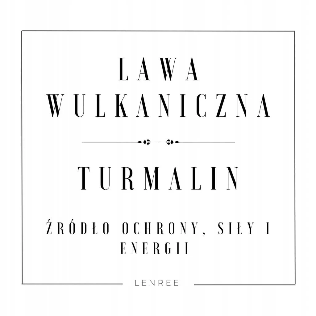 Turmalin symbolizuje ochronę i wewnętrzną równowagę. Lawa wulkaniczna natomiast emanuje energią ziemi, pomagając uwolnić napięcie i odzyskać harmonię.