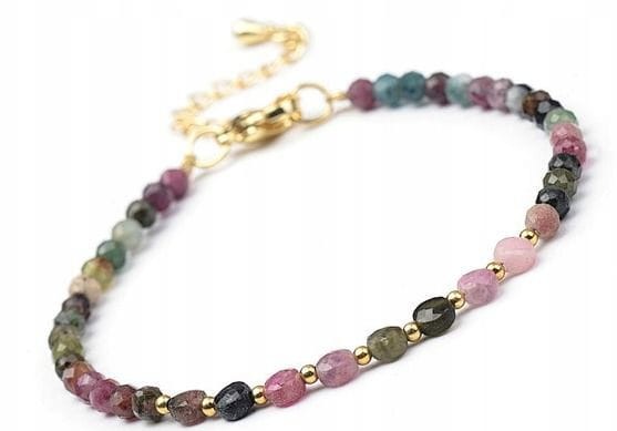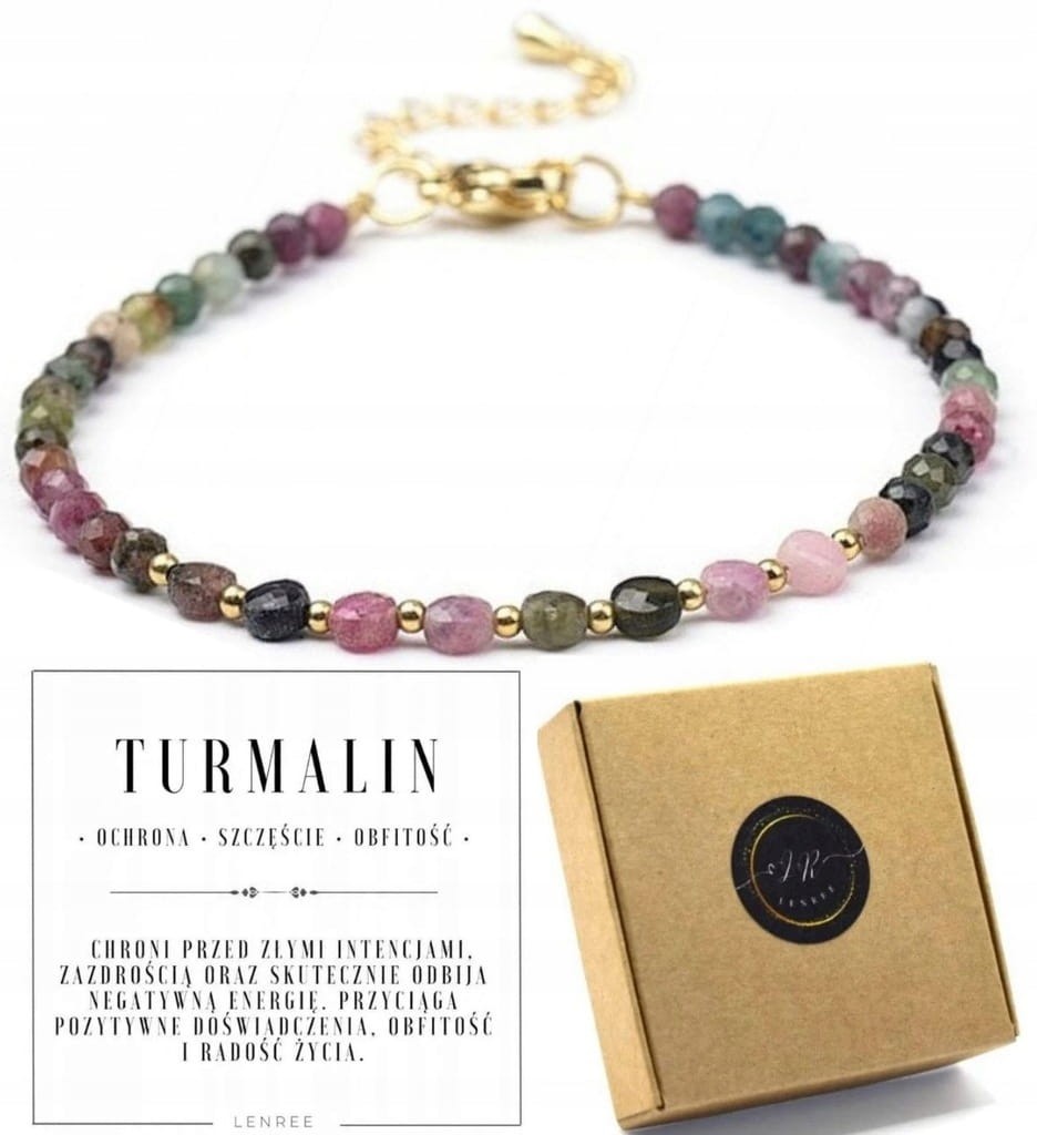 Elegancka bransoletka wykonana z kolorowego TURMALINU, znanego jako jeden z najsilniejszych kamieni ochronnych. Naturalne odcienie różu, zieleni, czerni i bordo tworzą delikatną, kobiecą kompozycję, która doskonale łączy estetykę z symboliką.