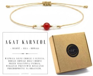 Bransoletka AGAT KARNEOL kamienie 3mm miłość siła odwaga LENREE