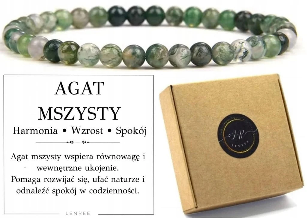 Bransoletka AGAT MSZYSTY 4 mm naturalne kamienie unisex LENREE