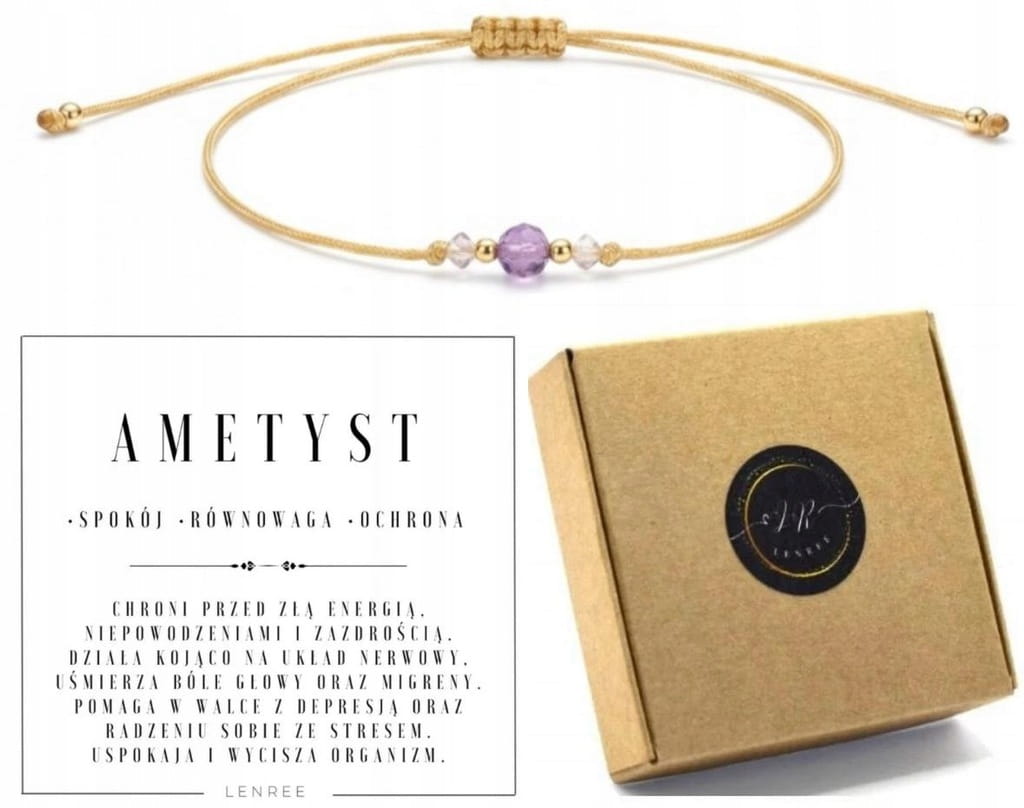 Bransoletka AMETYST 3mm spokój równowaga ochrona LENREE