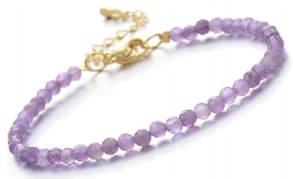 Subtelna, kobieca i pełna duchowej harmonii. Delikatne fasetowane kamienie w pięknym odcieniu lawendy, połączone ze złotymi elementami — idealna do codziennych stylizacji