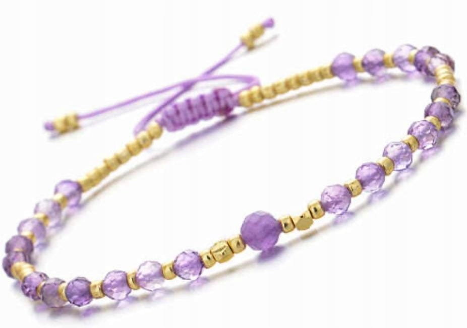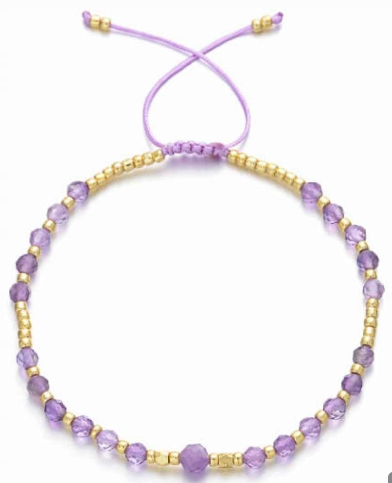 Subtelna i energetyczna bransoletka z AMETYSTU ze złotymi dodatkami ✨