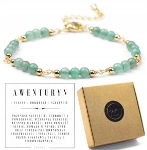 Bransoletka Damska AWENTURYN Naturalne Kamienie Zielona Elegancka LENREE