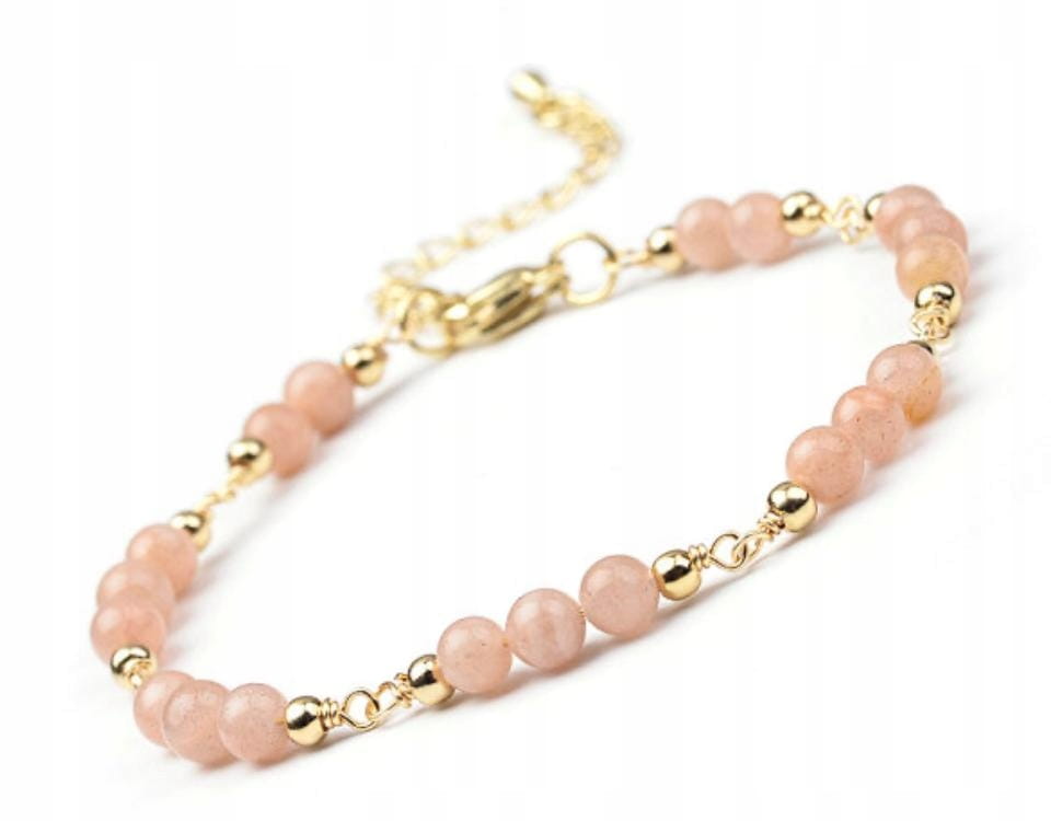 Delikatna i kobieca bransoletka wykonana z naturalnego kamienia słonecznego w ciepłym, brzoskwiniowym odcieniu. Jej subtelny blask pięknie podkreśla kobiecy styl i dodaje lekkości każdej stylizacji.