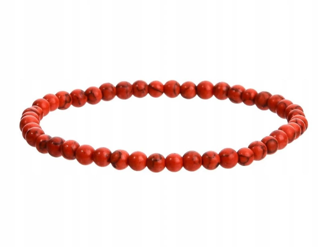 Ultradelikatna bransoletka wykonana z naturalnego howlitu czerwonego o średnicy 4 mm. Ten subtelny rozmiar koralików nadaje biżuterii elegancji, lekkości i wyjątkowo minimalistycznego charakteru — idealna do noszenia solo lub w zestawie z innymi bransoletkami.