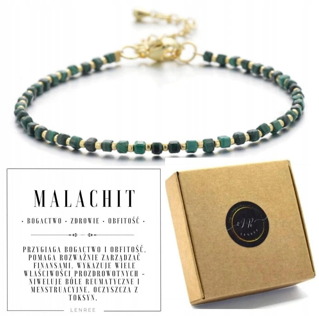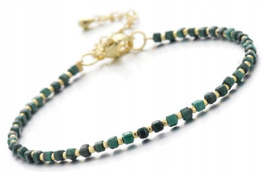Bransoletka MALACHIT sześcienne kamienie złote dodatki LENREE
