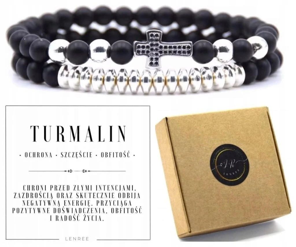 Bransoletka TURMALIN krzyż naturalne kamienie srebro LENREE