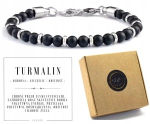 Bransoletka TURMALIN stal naturalne kamienie męska damska LENREE