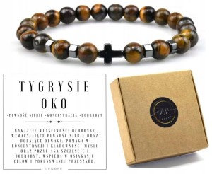 Bransoletka TYGRYSIE OKO krzyżyk hematyt naturalne kamienie LENREE