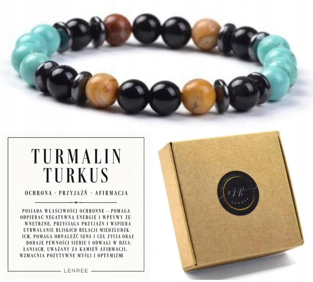 Noś przy sobie siłę ochrony i pozytywnego nastawienia! Ta wyjątkowa bransoletka z turmalinu i turkusu to talizman harmonii, przyjaźni i wewnętrznej mocy �✨