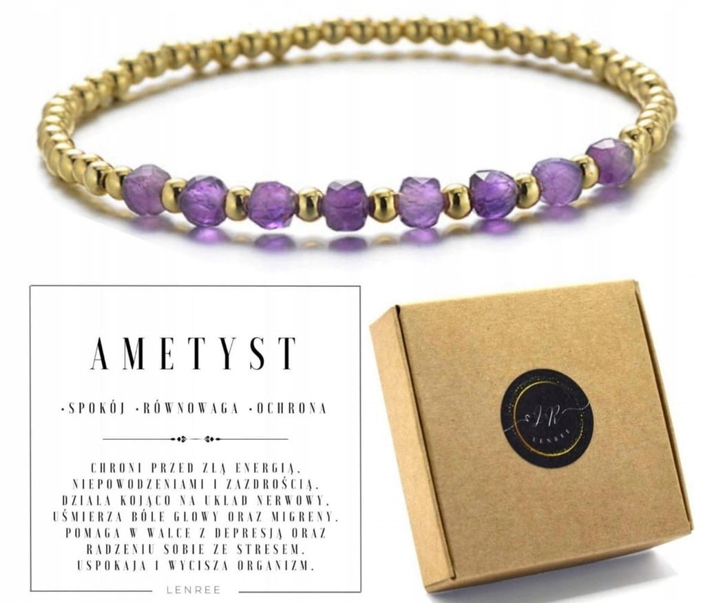 Unikalna, ręcznie wykonana bransoletka z naturalnego ametystu oraz złotego hematytu. Idealna dla osób poszukujących wewnętrznego wyciszenia, ochrony przed negatywną energią i emocjonalnej równowagi.