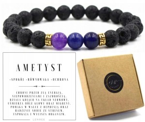 Bransoletka ametyst lawa wulkaniczna naturalne kamienie unisex LENREE