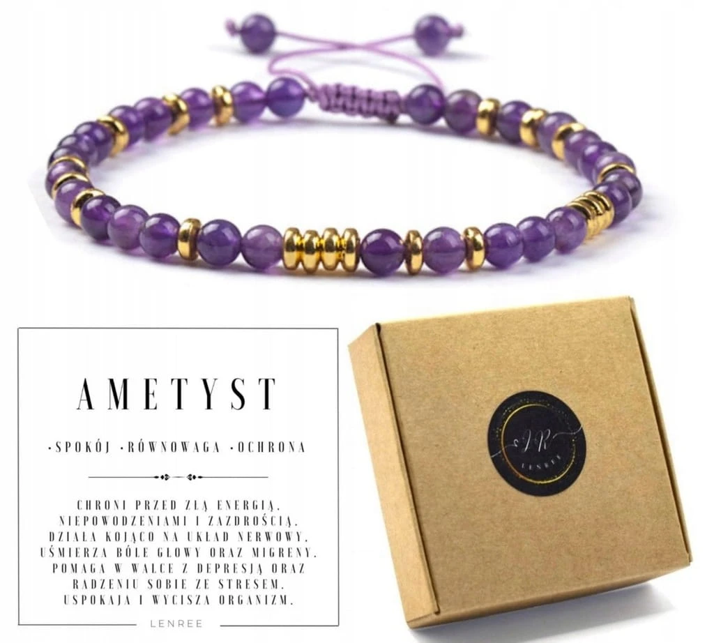 Bransoletka ametyst naturalny regulowana złoto spokój prezent