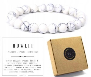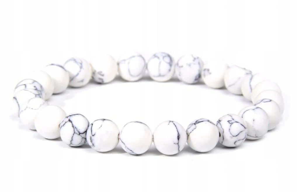 Elegancka bransoletka z białego howlitu 8 mm, idealna dla kobiet ceniących harmonię, spokój i delikatną, naturalną energię. Każdy kamień ma unikalne, szare żyłkowanie — nie ma dwóch identycznych bransoletek.