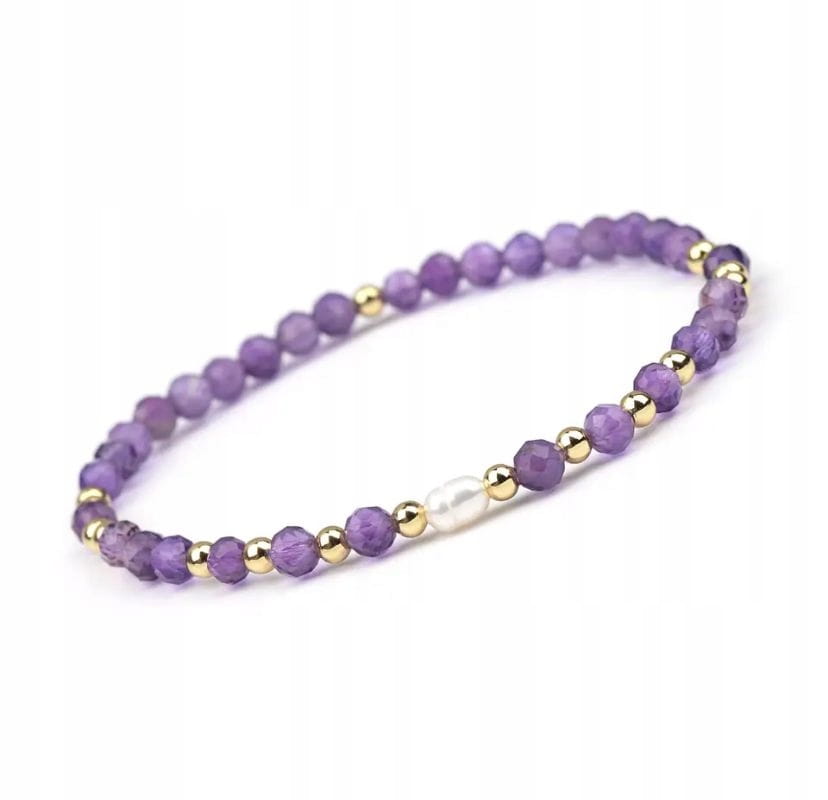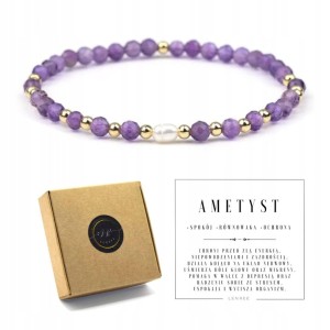 Bransoletka damska KAMIENIE NATURALNE - AMETYST - PERŁA + pudełko