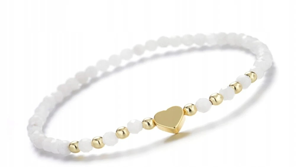 Przedstawiamy elegancką bransoletkę wykonaną z naturalnych kamieni księżycowych o średnicy 4 mm, ozdobioną delikatnym małym sercem. To wyjątkowy dodatek, który doda blasku każdej stylizacji.