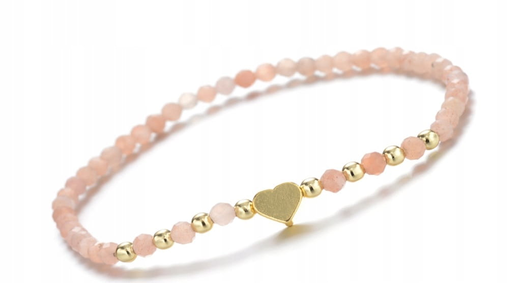 Przedstawiamy piękną bransoletkę wykonaną z naturalnych kamieni kamienia słonecznego o średnicy 4 mm, ozdobioną urokliwym małym sercem. To wyjątkowy dodatek, który doda blasku każdej stylizacji.