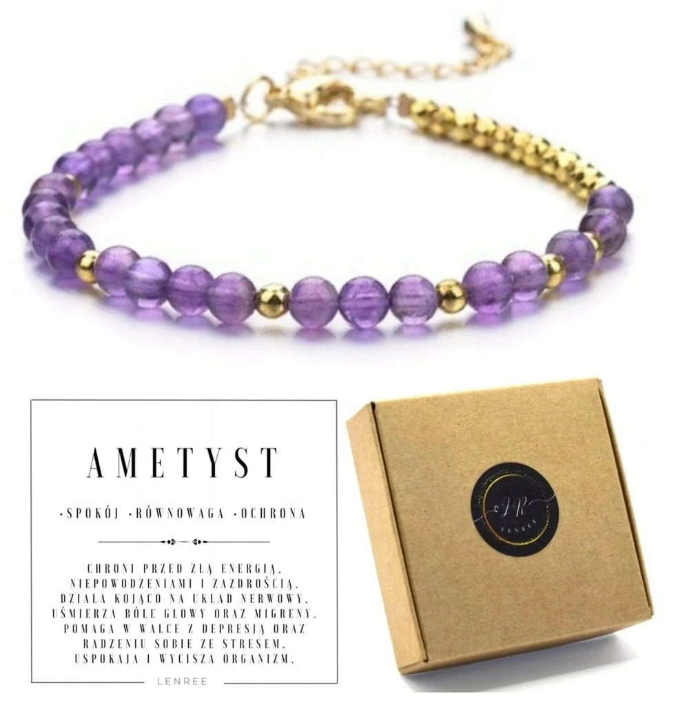 Bransoletka damska ametyst hematyt kamienie naturalne regulowana