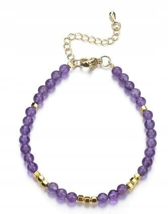 Bransoletka z ametystem i hematytem – stal chirurgiczna, kamienie naturalne, złote wykończenie