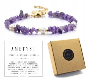 Delikatna i kobieca bransoletka wykonana z wysokiej jakości stali chirurgicznej w kolorze złota. Ozdobiona naturalnym ametystem i perłą hodowlaną, które tworzą harmonijne i ponadczasowe połączenie.