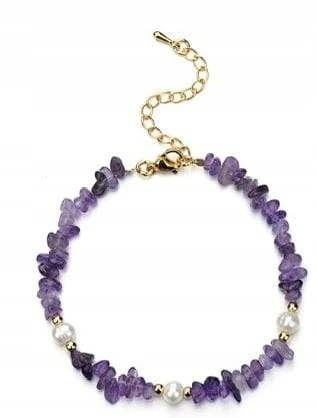 Bransoletka damska ametyst perła kamienie stal chirurgiczna złote