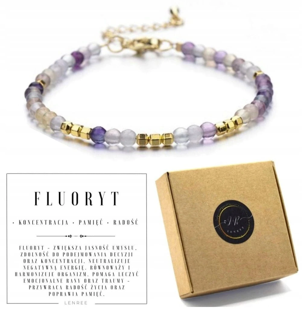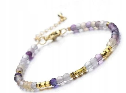 Bransoletka damska fluoryt hematyt kamienie stal chirurgiczna regulowana
