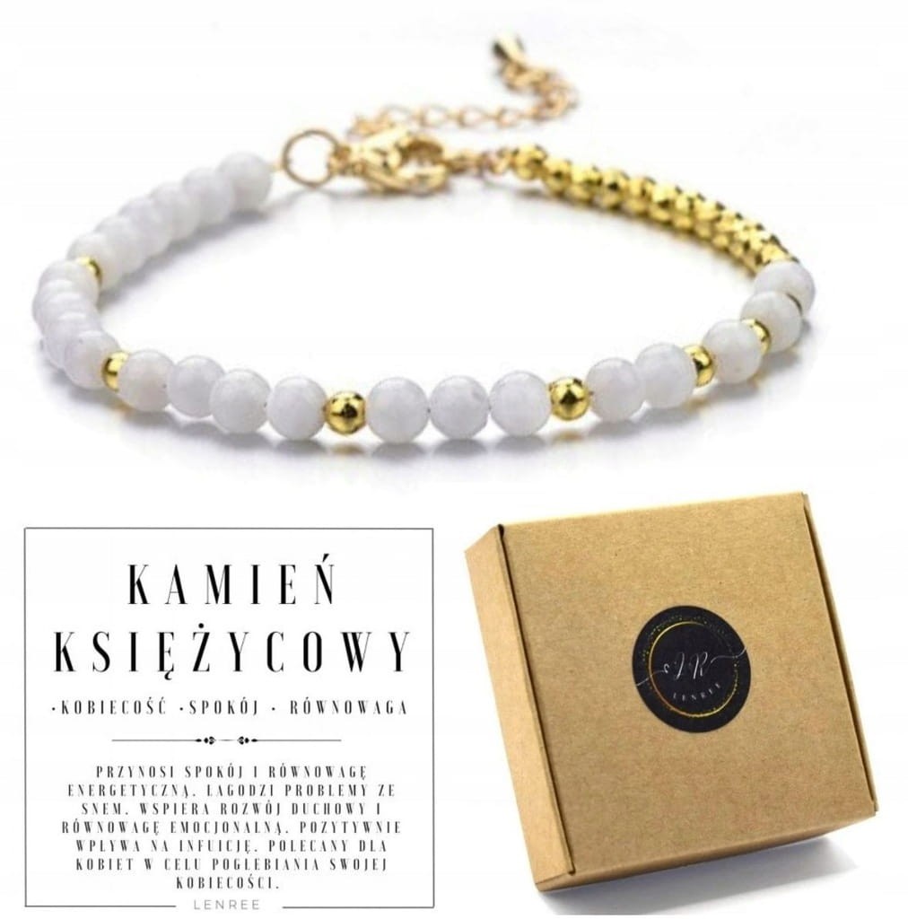 Bransoletka damska kamień księżycowy hematyt kamienie naturalne regulowana