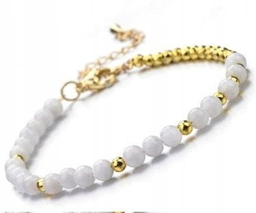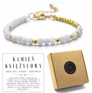 Bransoletka z kamieniem księżycowym i hematytem – stal chirurgiczna, naturalne kamienie, złote detale