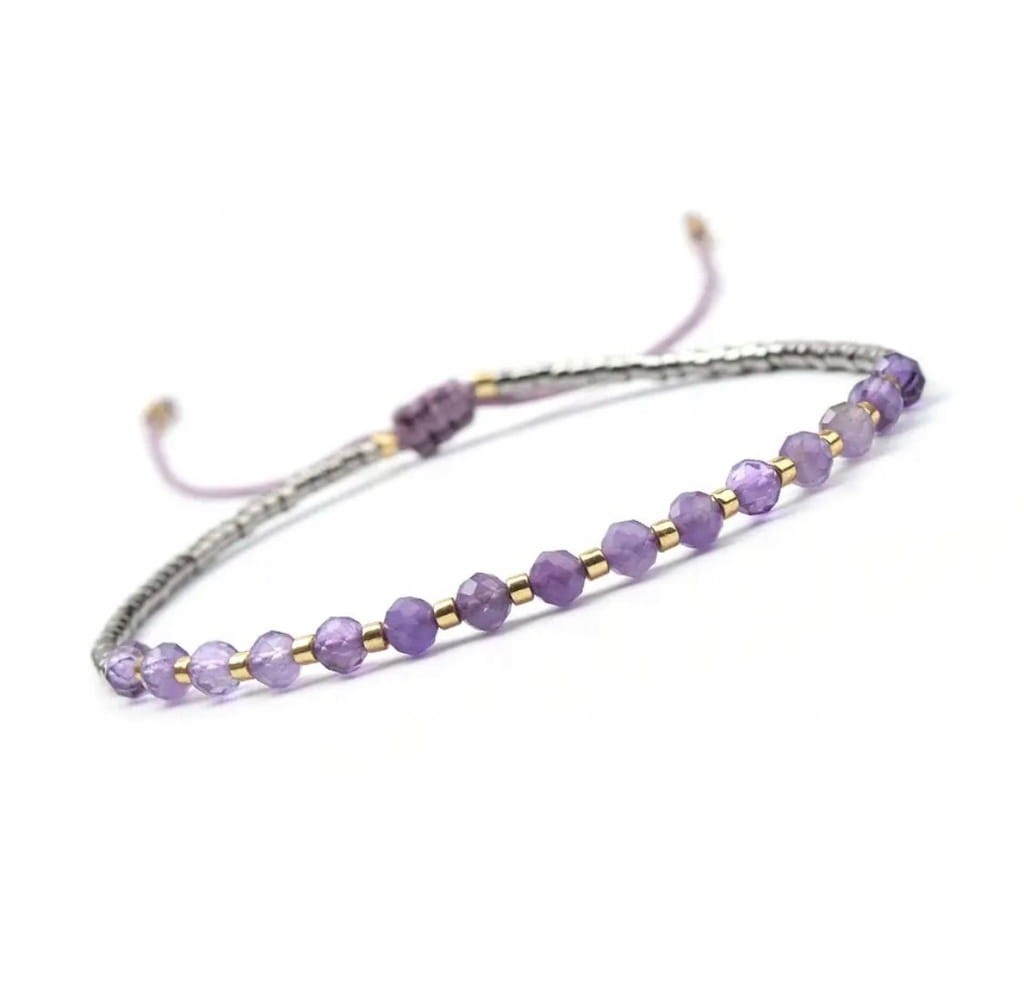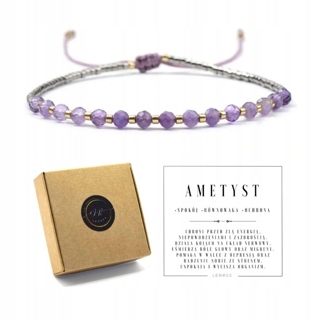 Bransoletka damska na sznurku AMETYST kamienie naturalne + pudełko