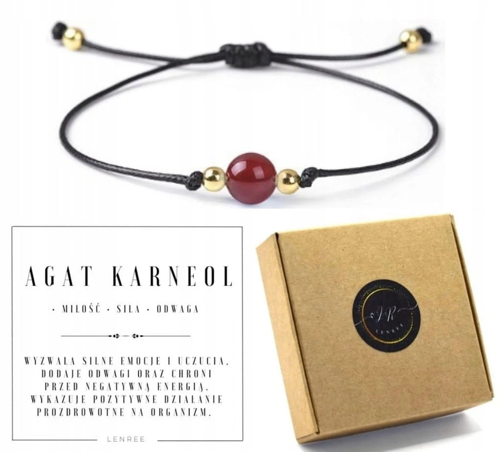 Bransoletka damska na sznurku agat karneol kamienie naturalne regulowana