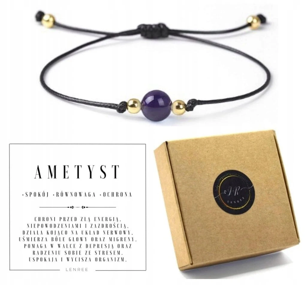 Bransoletka damska na sznurku ametyst kamienie naturalne regulowana