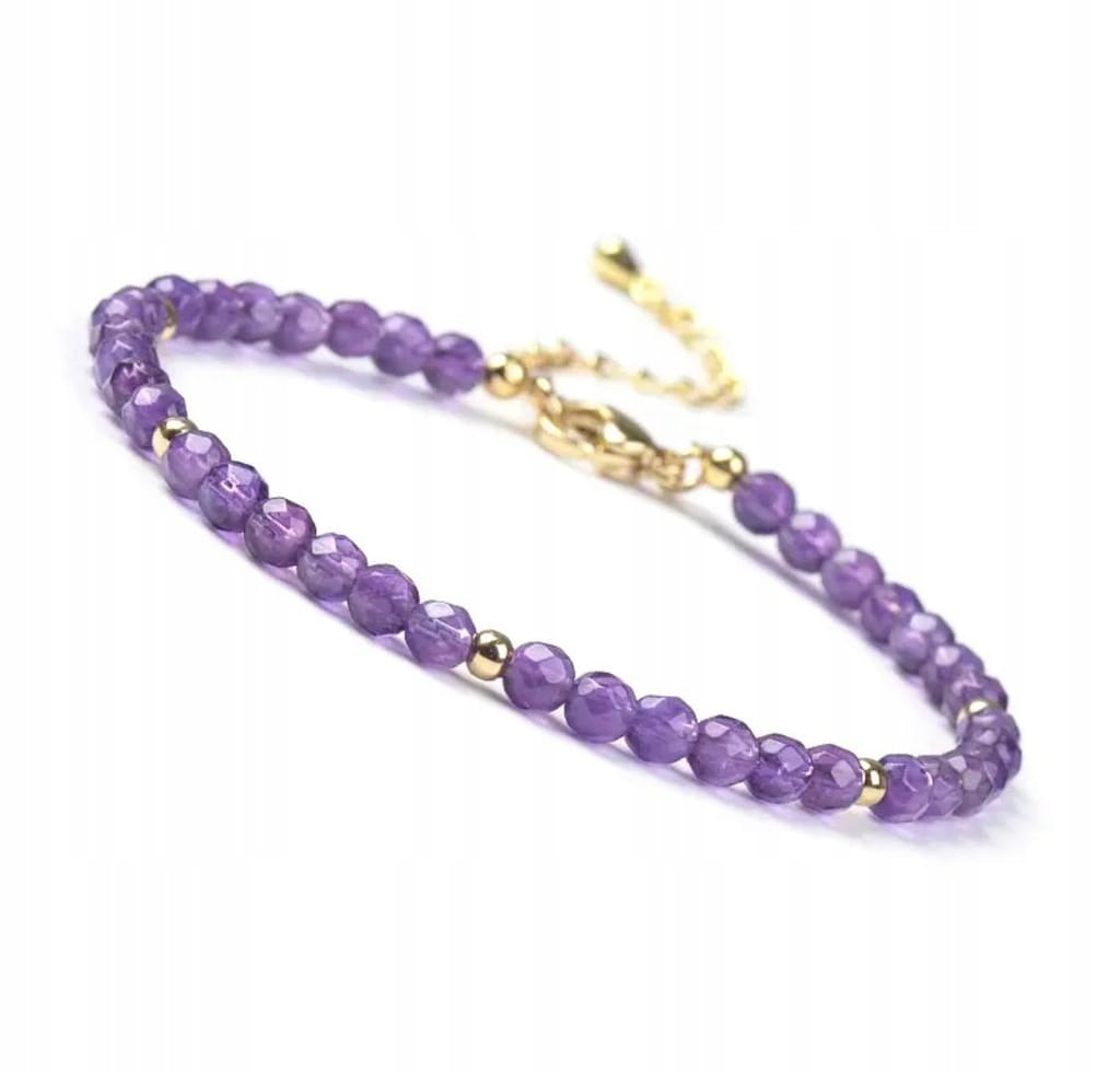 Przedmiotem aukcji jest bransoletka damska zapinana wykonana z kamienia naturalnego - AMETYST z dodatkiem stali chirurgicznej w kolorze złotym.
