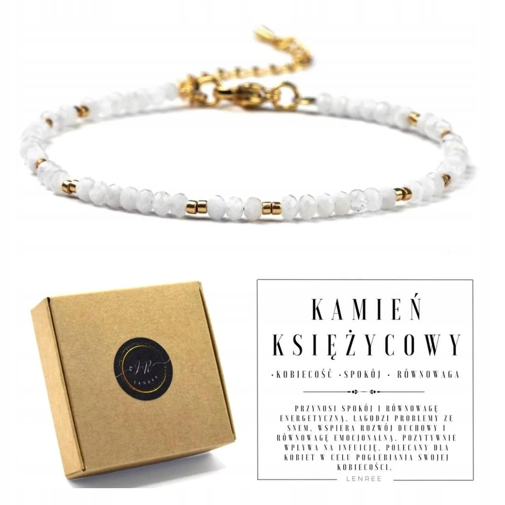 Bransoletka damska zapinana KAMIEŃ KSIĘŻYCOWY kamienie naturalne + pudełko