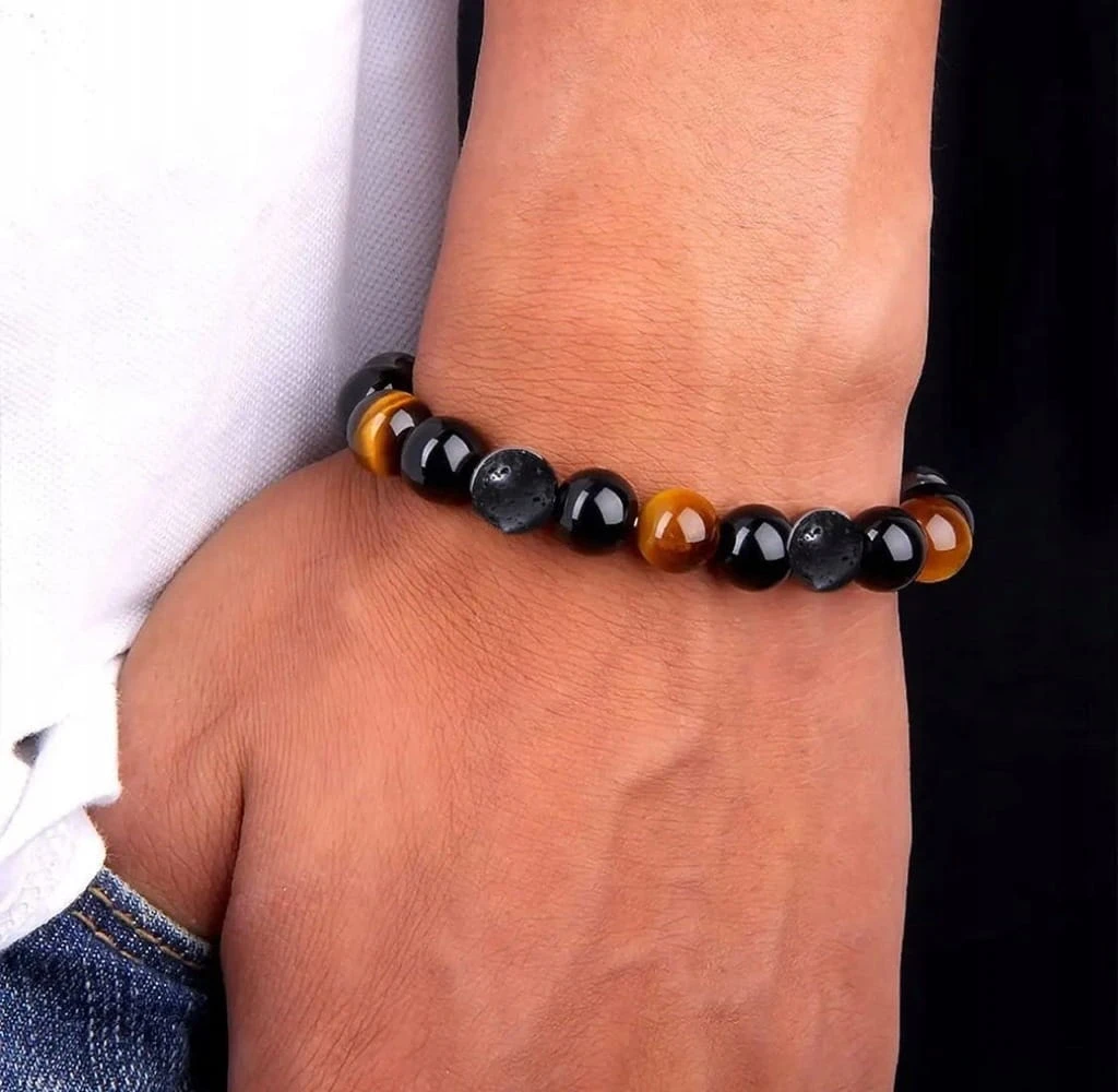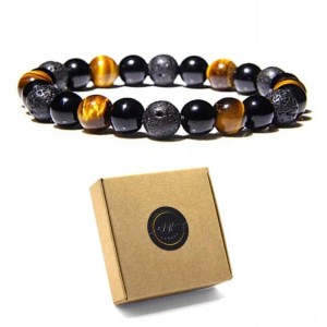 Bransoletka kamienie naturalne TURMALIN - LAWA WULKANICZNA - TYGRYSIE OKO
