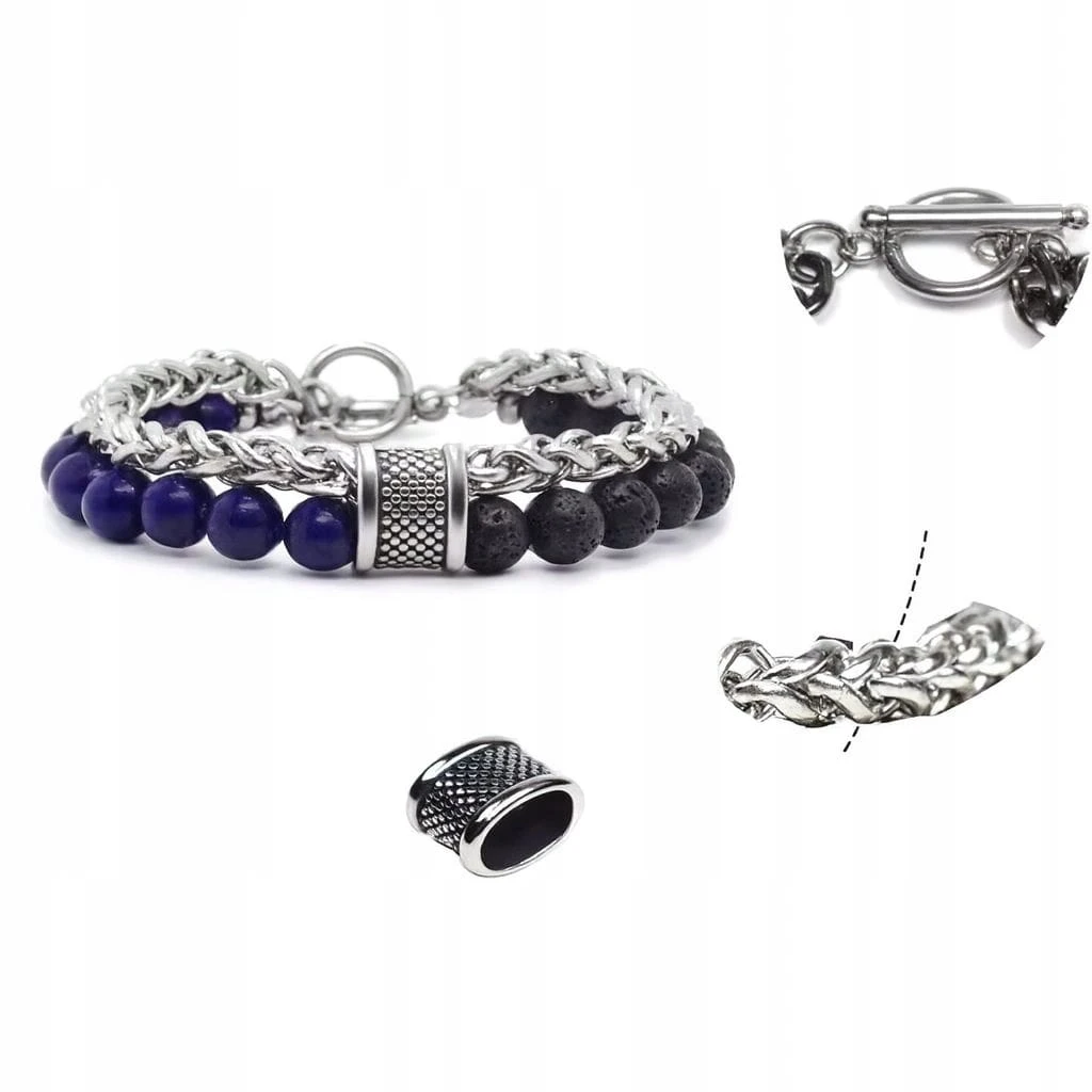 Bransoletka męska lapis lazuli lawa stal szlachetna unisex