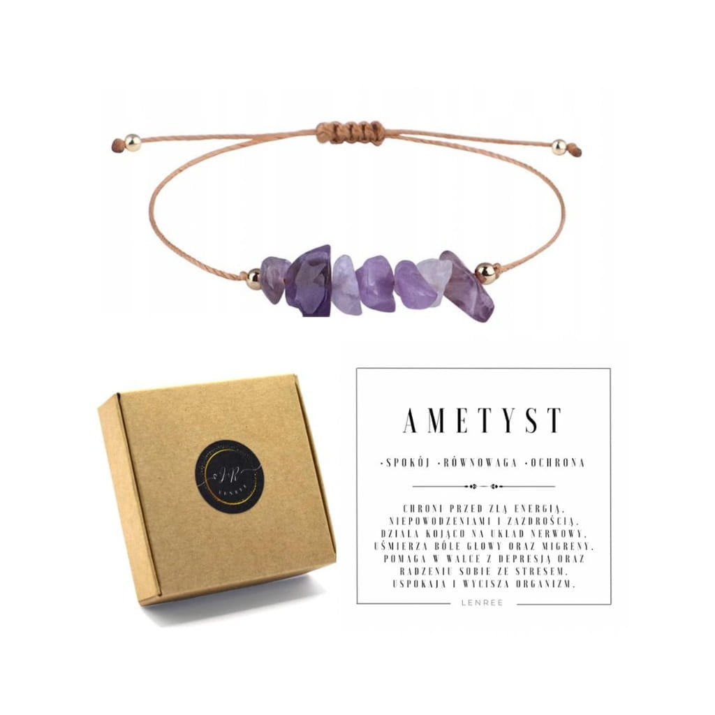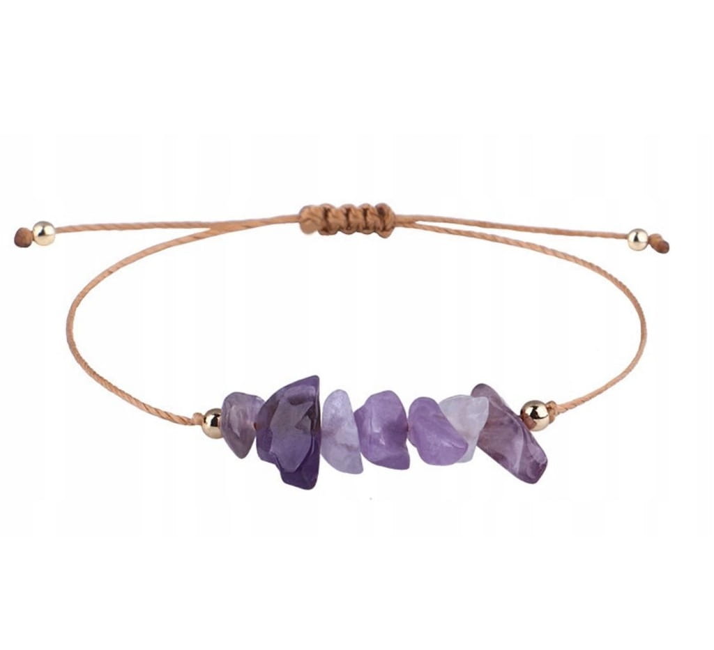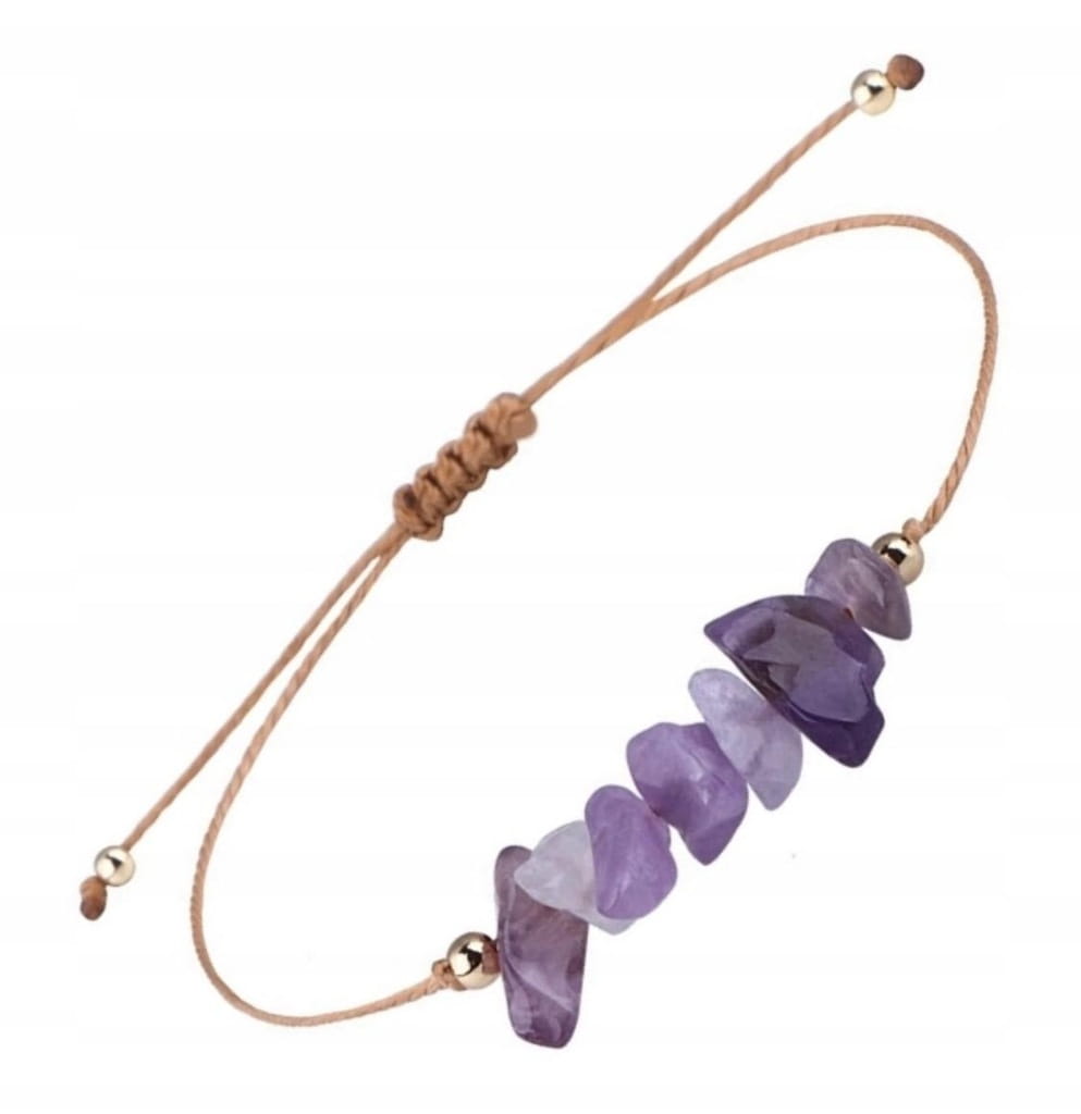 Bransoletka na sznurku talizman kamienie naturalne AMETYST sieczka +pudełko
