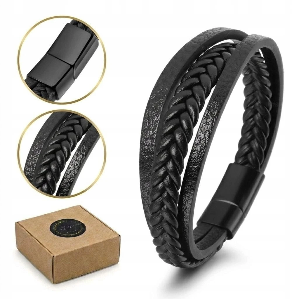 Bransoletka skórzana czarna pleciona minimalistyczna stal LENREE
