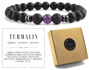 Bransoletka turmalin ametyst uniseks ochrona energia prezent box