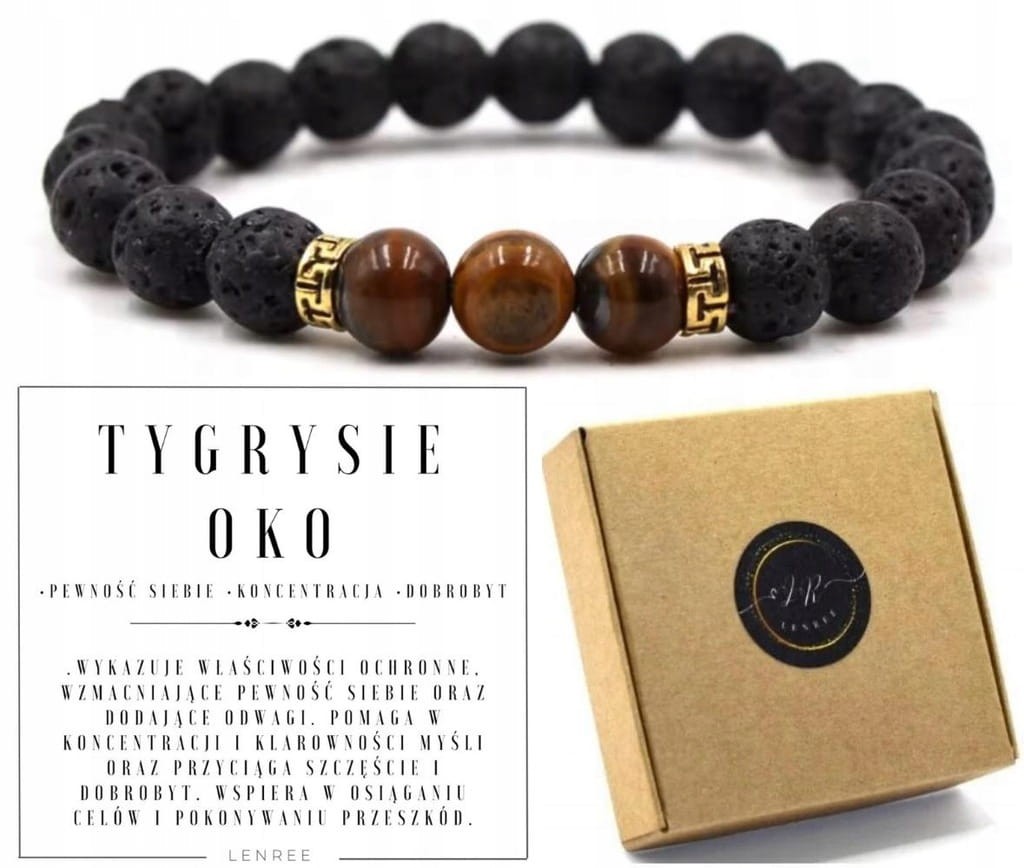 Bransoletka z kamieni naturalnych tygrysie oko lawa wulkaniczna LENREE