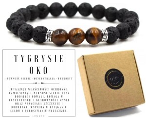 Bransoletka z kamieni naturalnych tygrysie oko lawa wulkaniczna LENREE