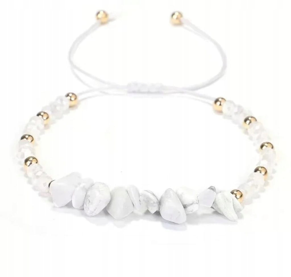 Przedmiotem aukcji jest bransoletka damska zaciągana na sznurku wykonana z kamienia naturalnego - HOWLIT BIAŁY.
