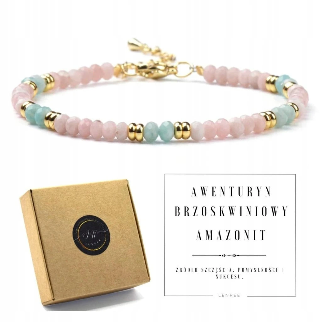 Bransoletka zapinana AWENTURYN BRZOSKWINIOWY AMAZONIT kamienie naturalne
