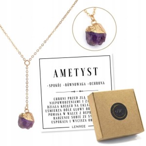 Naszyjnik AMETYST naturalny kamień surowy damski złoty prezent LENREE
