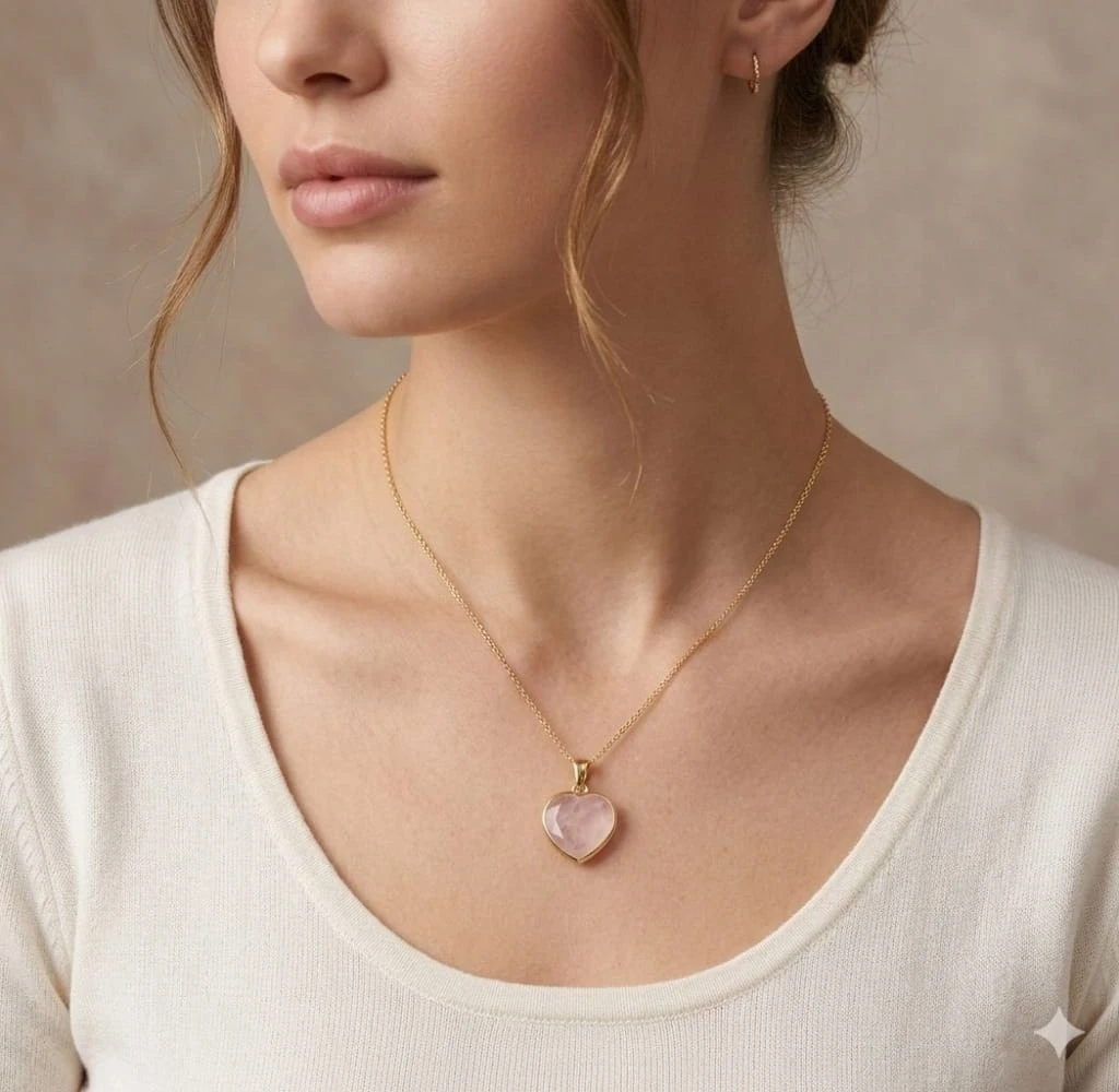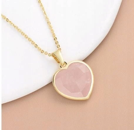 Naszyjnik KWARC RÓŻOWY serce damski złoty kamień miłości LENREE