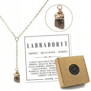 Naszyjnik LABRADORYT naturalny kamień surowy damski złoty LENREE