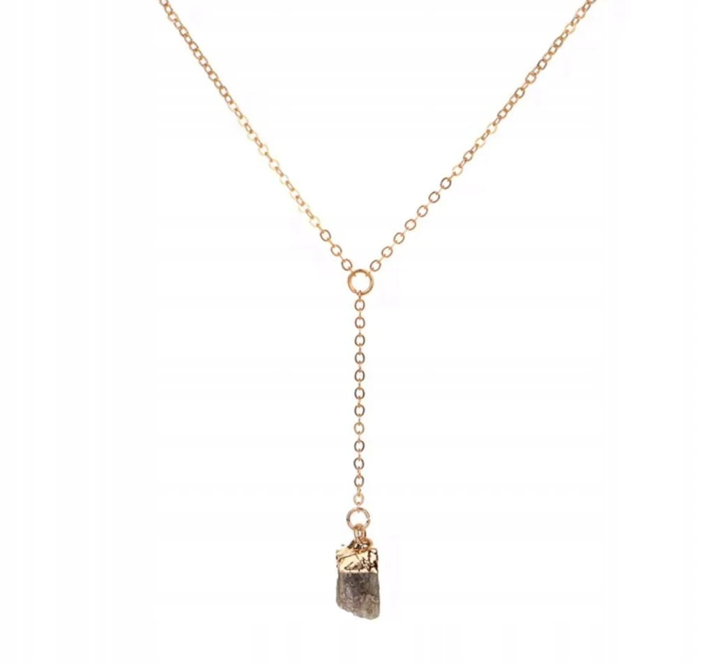 Połączenie surowego minerału z delikatnym złotym łańcuszkiem tworzy elegancki, a jednocześnie naturalny styl inspirowany pięknem natury.